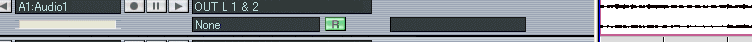 6.バウンスが終わると、下図のように、A1:Audioの右側に波形が出ます。波形のところにマウスポインタを当ててクリックしますと、左チャンネルと右チャンネルに録音された波形が大きく出てきます。